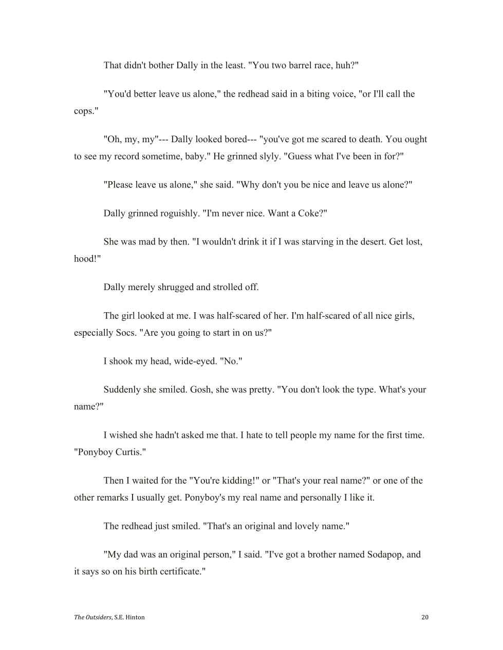 Sodapop is a high school drop out.