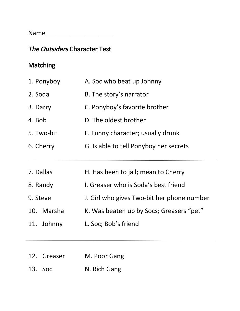 Cherry | arrow_right_alt | Ponyboy's oldest brother |
