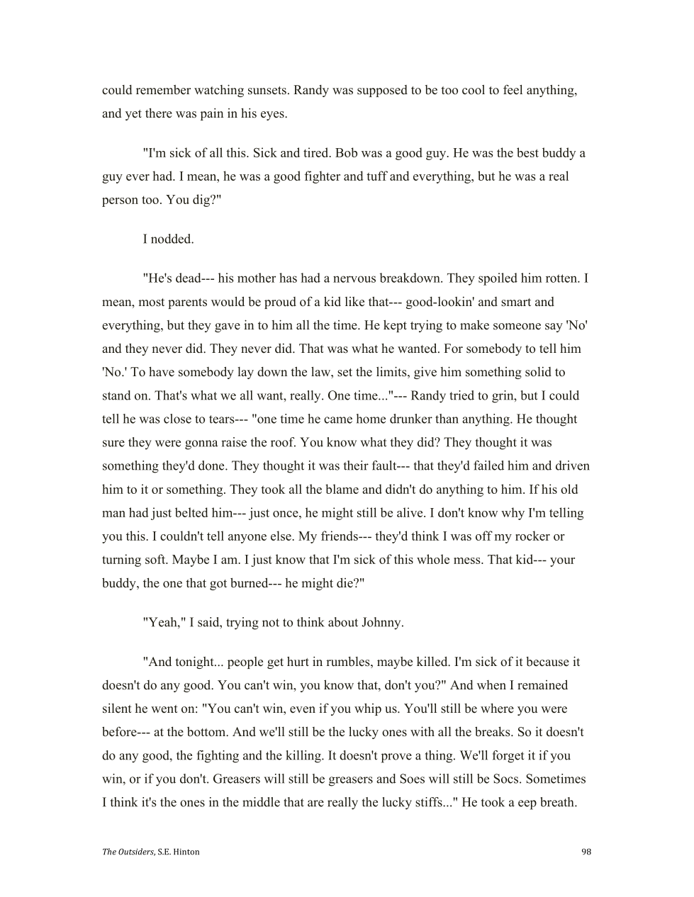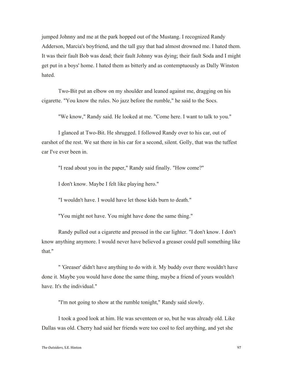 In the end Randy and Ponyboy have more in common than they have differences.