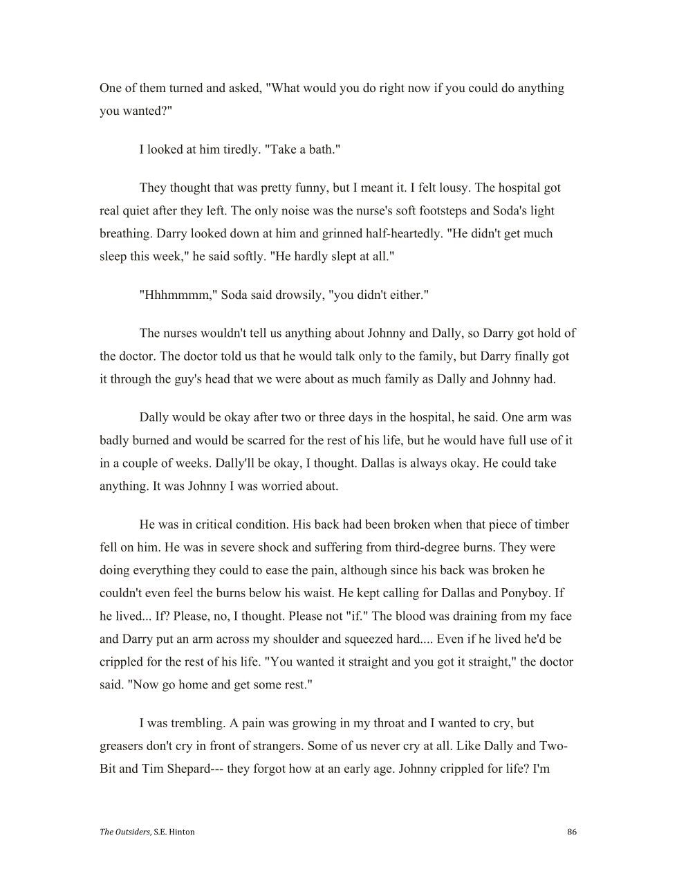 Ponyboy has a bad headache. What do you think is wrong with him?
