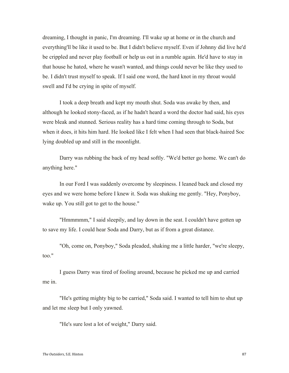Ponyboy is well enough to go home.