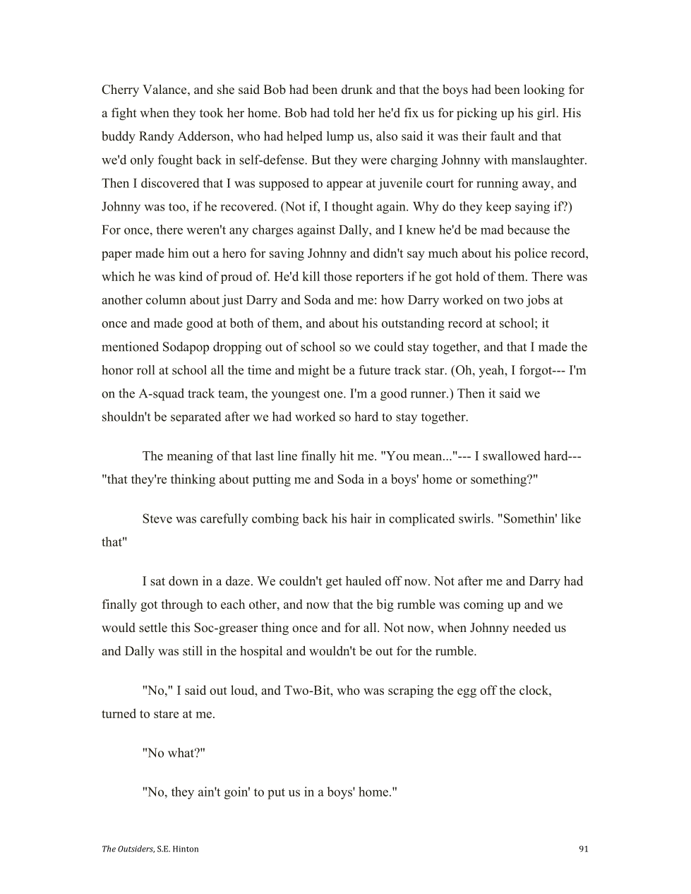 The brothers may get separated. Soda and Ponyboy put into foster homes.