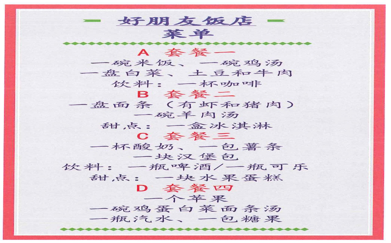 3、天天喜欢吃西餐,他要哪个套餐?