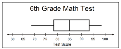 For questions 1-5, refer to the box & whisker graph below which shows the test results of a math class.