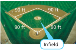 On a baseball field, the area inside the base path is the infield. For a major league field, the infield must be a square that is 90 feet on each side, and each base is a corner of the square. What is the area of the infield in square feet?