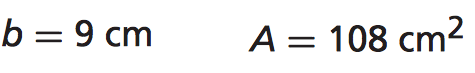 For Problems 6 - 9, find the area of a parallelogram with the given base and height.