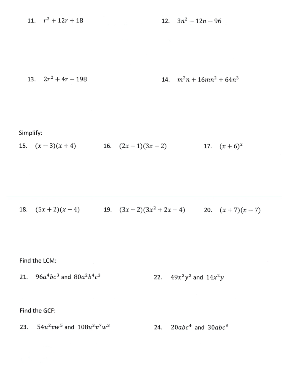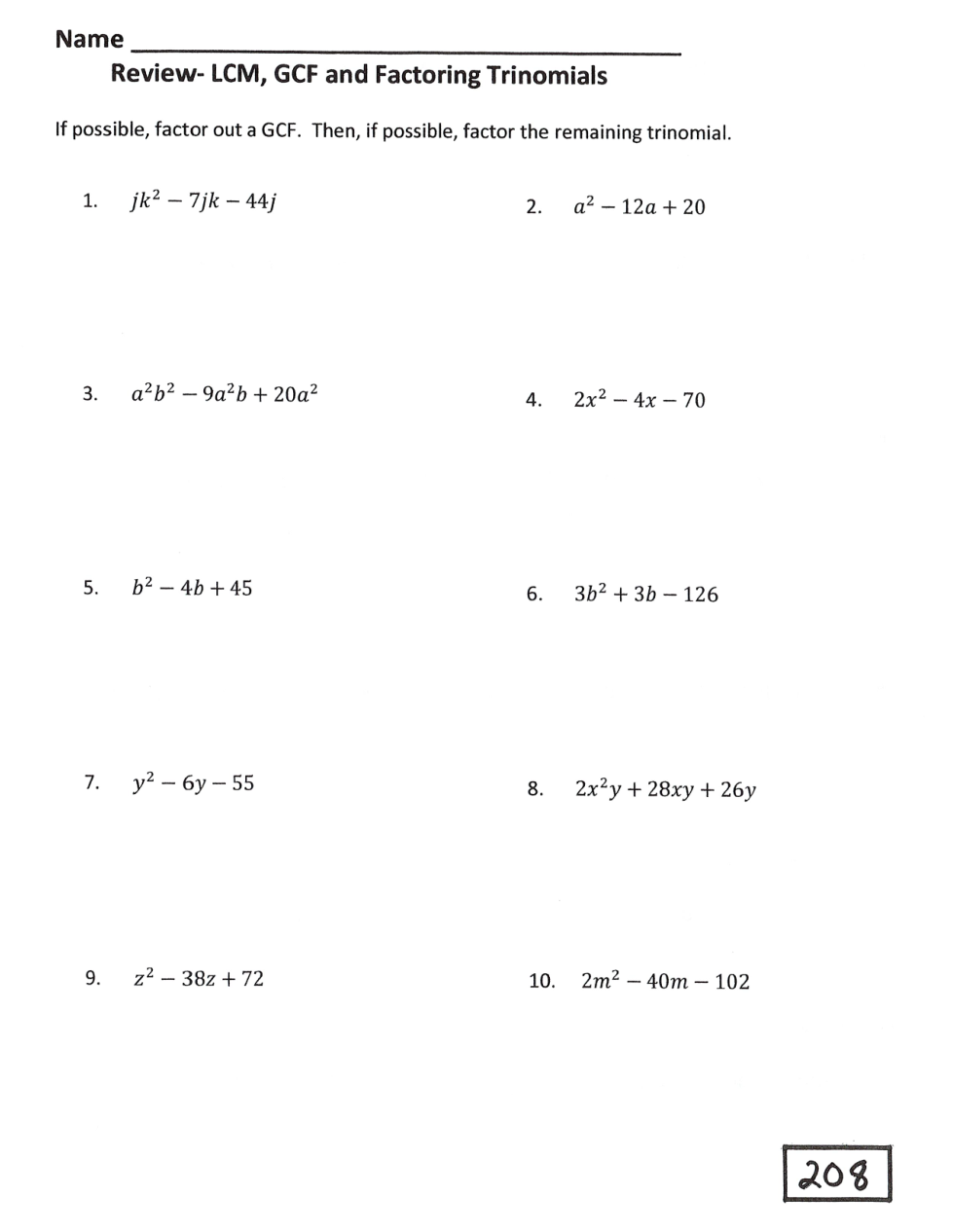If possible, factor out a GCF. Then, if possible, factor the remaining trinomial. If no factoring is possible (GCF or trinomial, put PRIME).