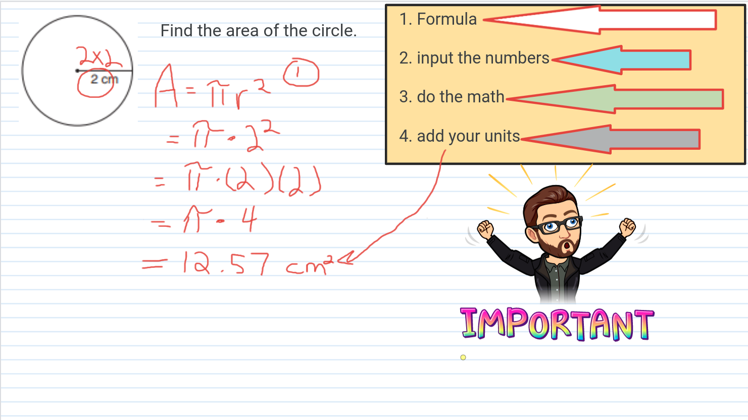 a) Find the area of the large circle.