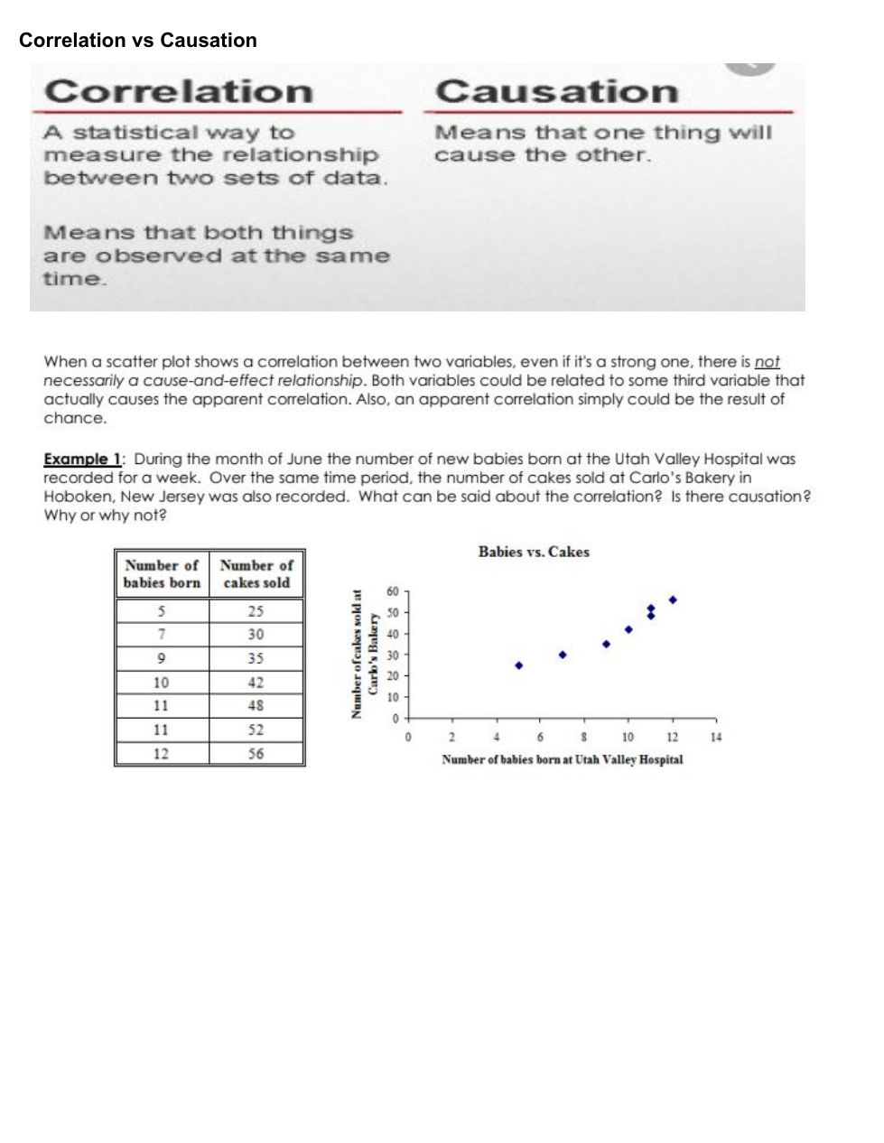 Is there causation between the number of babies born at Utah Valley Hospital and the number of cakes baked at Carlo's Bakery in New Jersey?