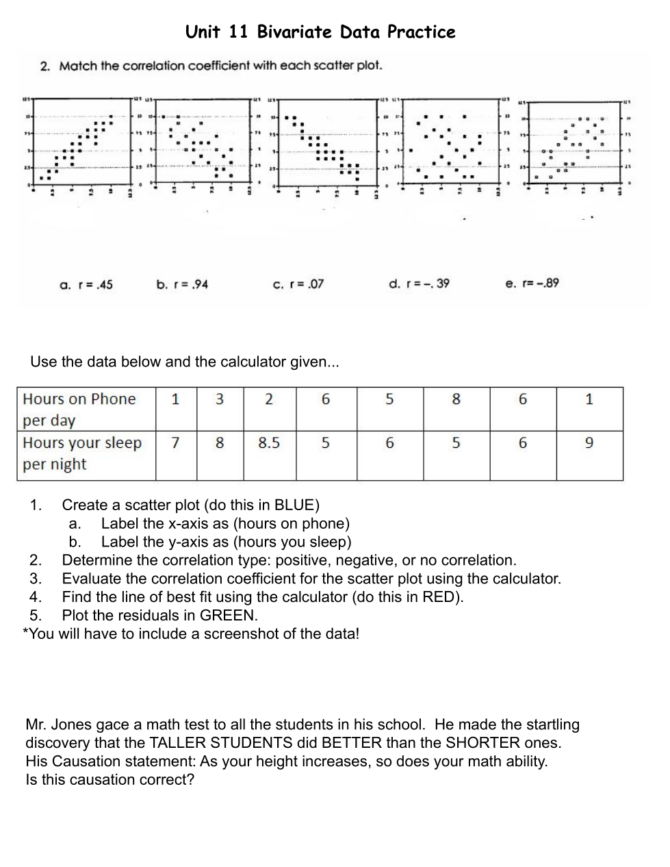 Create a scatter plot in BLUE using the desmos graphing calculator. Label the x-axis and y-axis using the worksheet information. UPLOAD YOUR PICTURE!