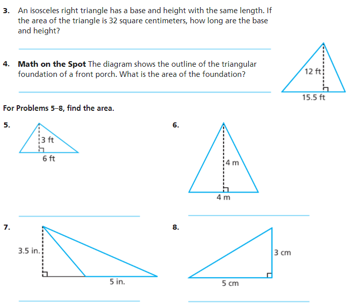 Un triángulo rectángulo isósceles tiene una base y una altura con la misma longitud. Si enel área del triángulo es de 32 centímetros cuadrados, ¿qué longitud tienen la basey la altura?