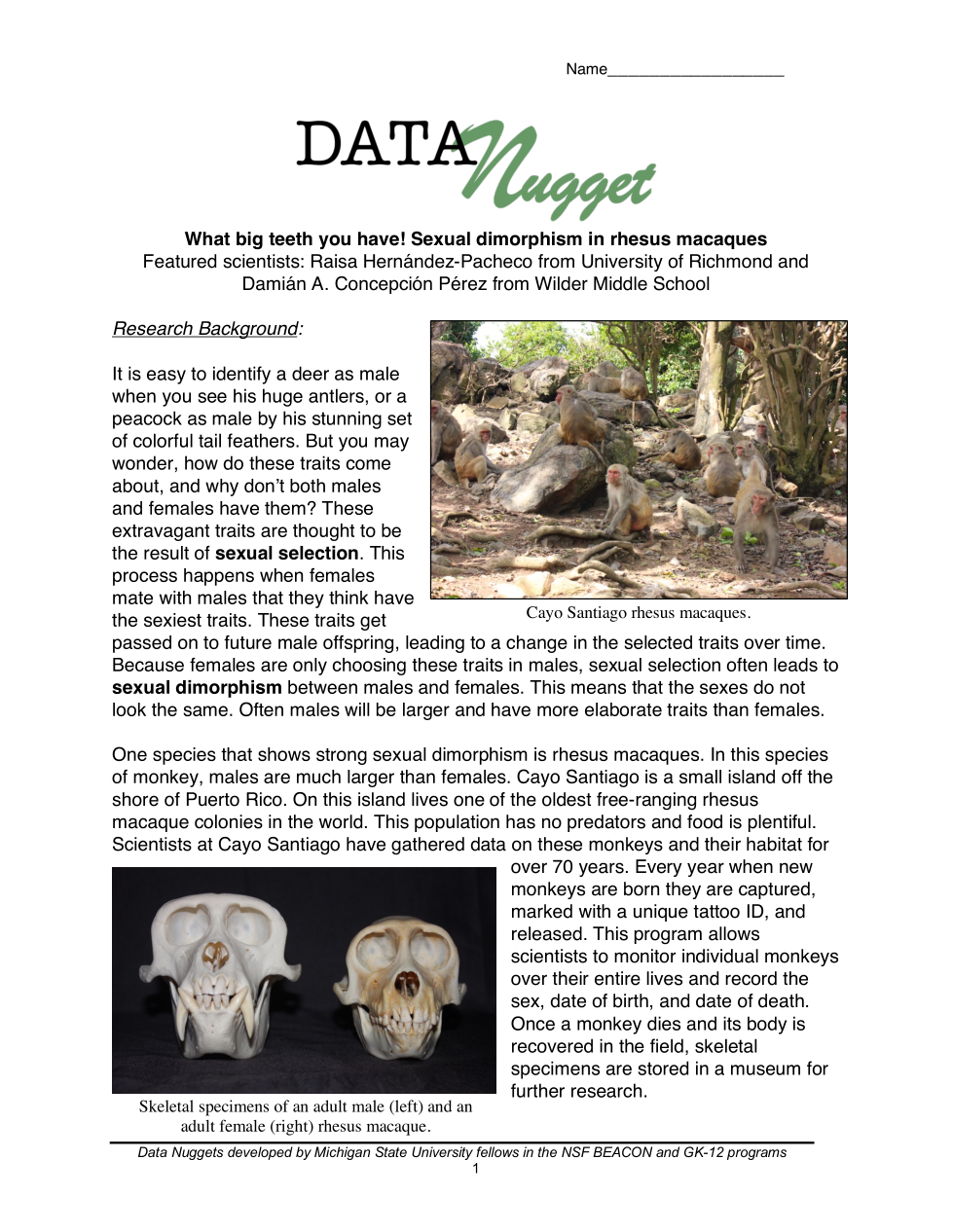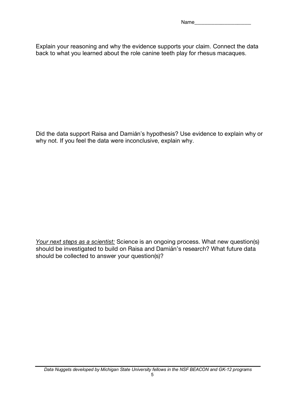 Explain your reasoning and why the evidence supports your claim. Connect the data back to what you learned about the role canine teeth play for rhesus macaques.