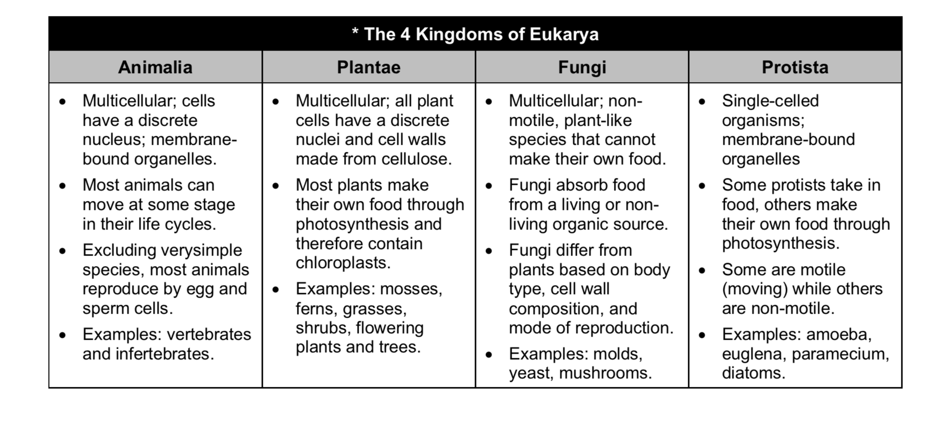Matching. Match the name of the kingdom on the left with the correct description on the right. Write or type the correct line next to the correct term.