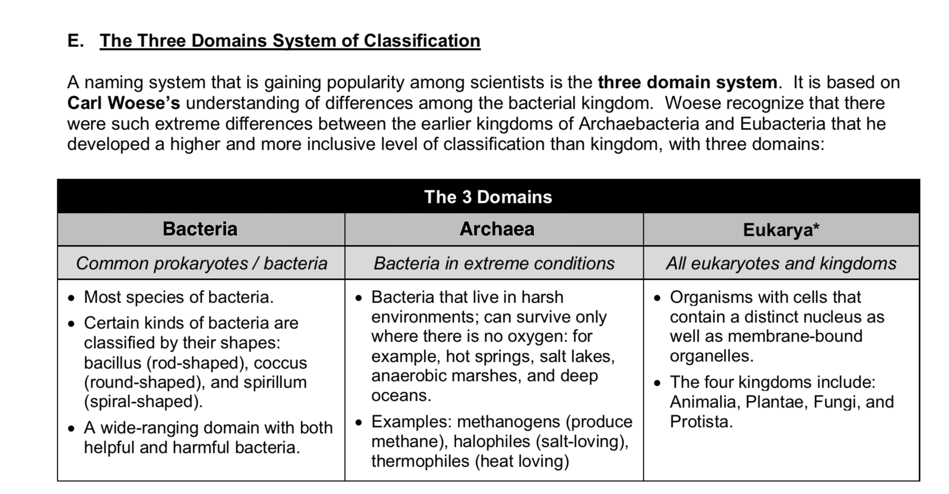 Woese’s evidence lead him to change Linnaeaus’ 6 kingdom scheme to one with 3 overarching domains, followed by 6 kingdoms. The chart above show the 4 Kingdoms of Eukarya. Describe his rationale behind it.