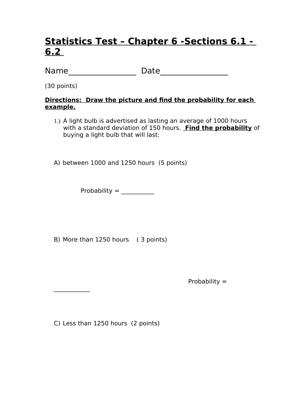 A light bulb is advertised as lasting an average of 1000 hours with a standard deviation of 150 hours. Find the probability of buying a light bulb that will last between 1000 and 1250 hours?