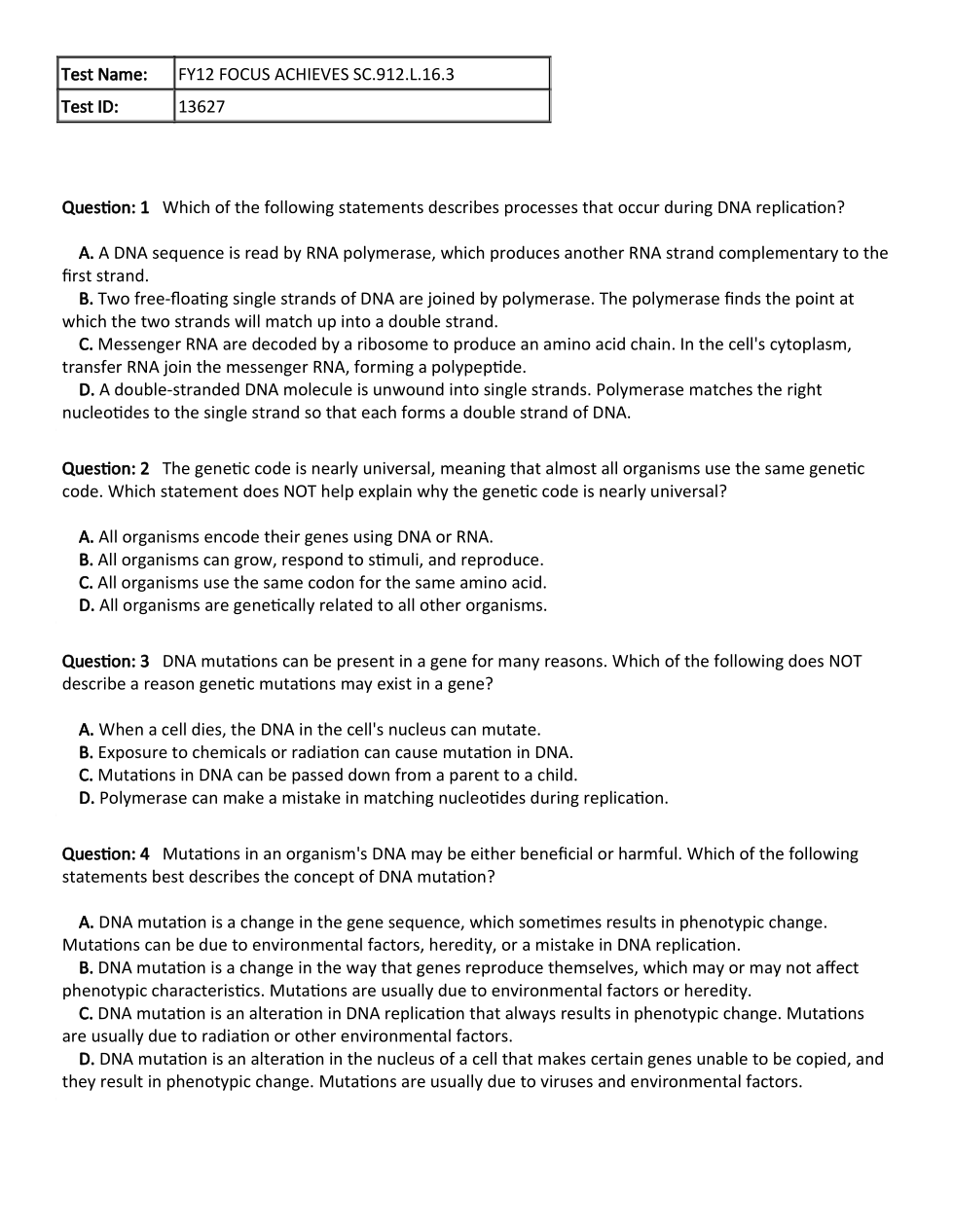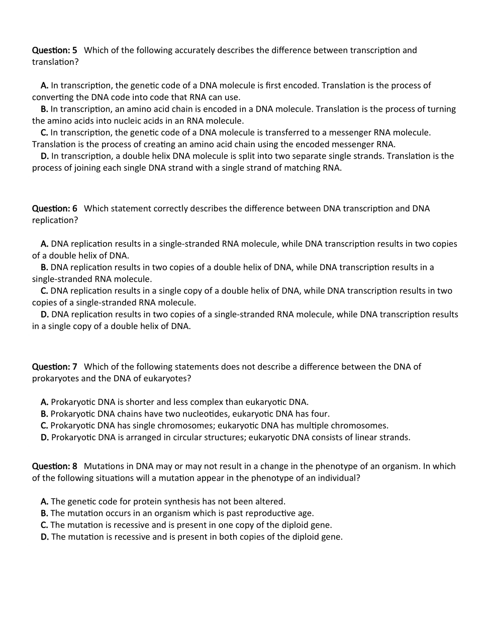 EOC Review - DNA, RNA, Replication, Transcription, Translation