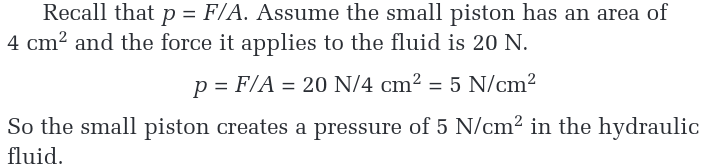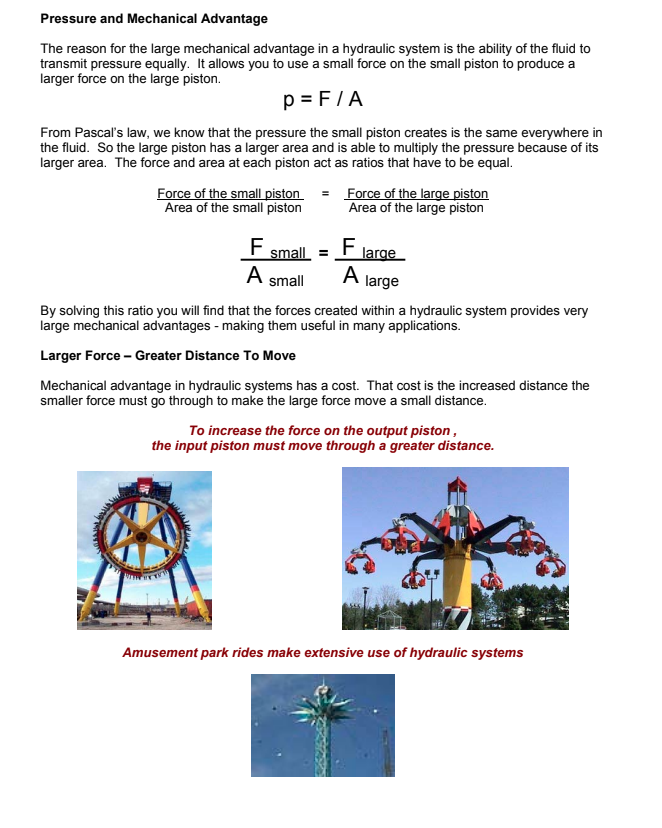 How do the sizes of the pistons affect the pressure in a hydraulic system? (pg. 295 & 298)