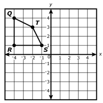 Quadrilateral QRST is shown on this coordinate plane. Richard and Haley will complete two different transformations on quadrilateral QRST.