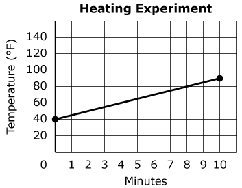 This graph shows the temperature, in degrees Fahrenheit, of a liquid for the first ten minutes of a heating experiment.