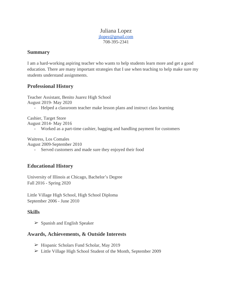 Optional: Create a resume on a Microsoft Word document. These 5 points will be added to your *CA: The Job Interview. Due on Monday, May 17th at 7:00 a.m.