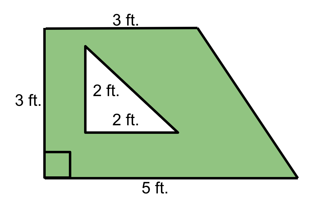 Hint: Find the area of the trapezoid and the area of the rectangle. Take away the area of the rectangle.