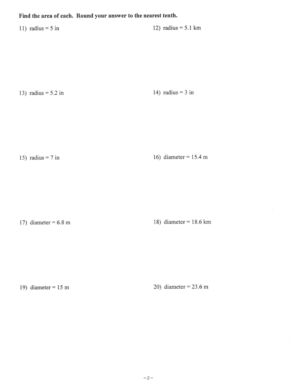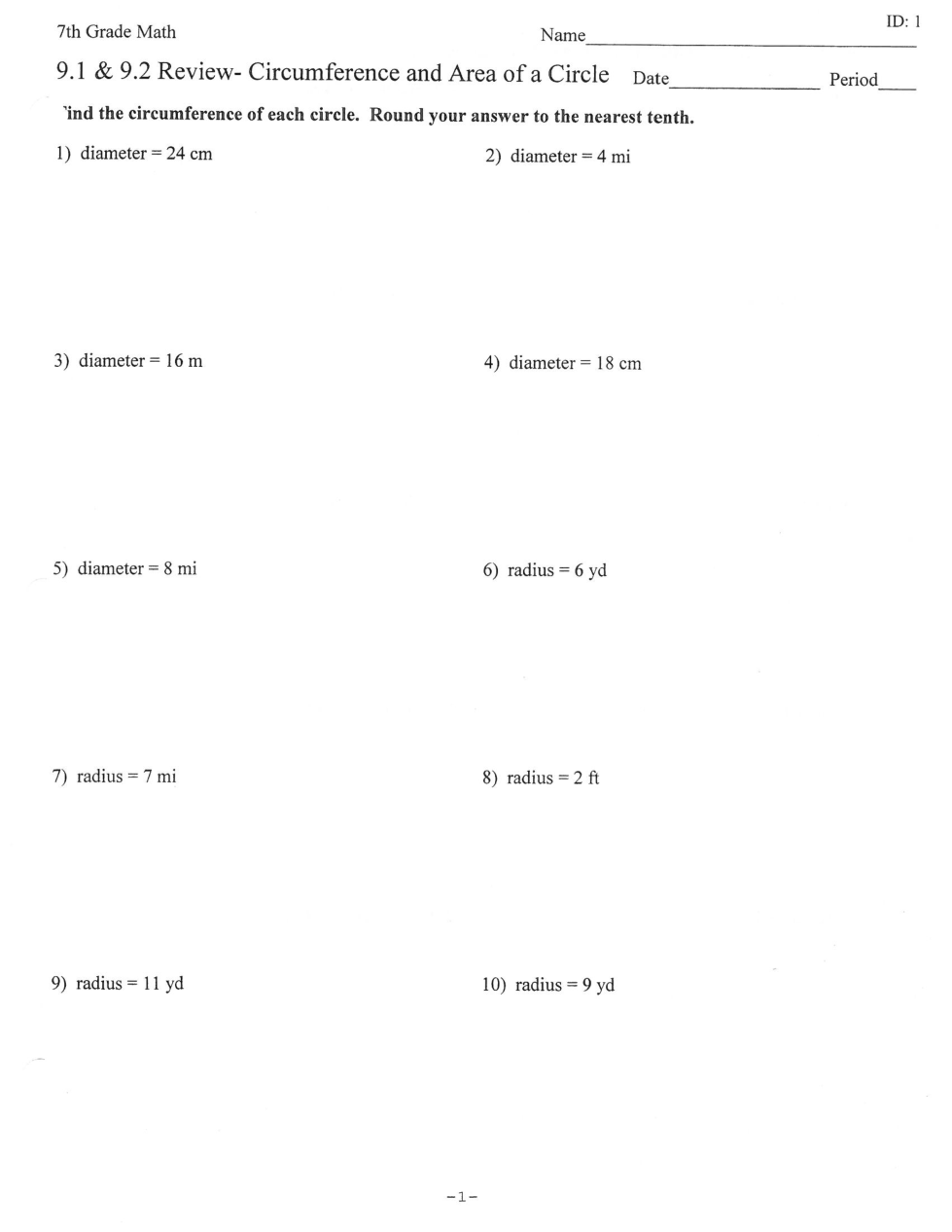9.1 & 9.2 Review- Circumference & Area of a Circle