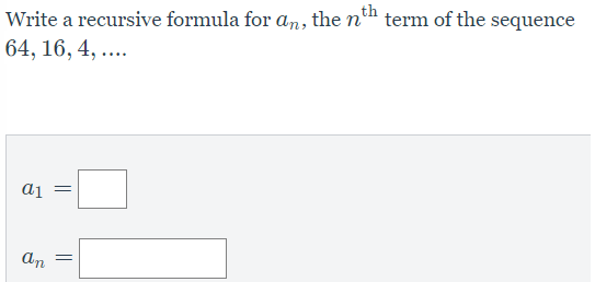The first three terms of a sequence are given. Write an explicit formula for the terms.16, 48, 144, ...