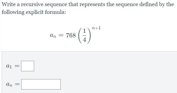 Write an explicit formula that represents the sequence defined by the following recrusive formula: