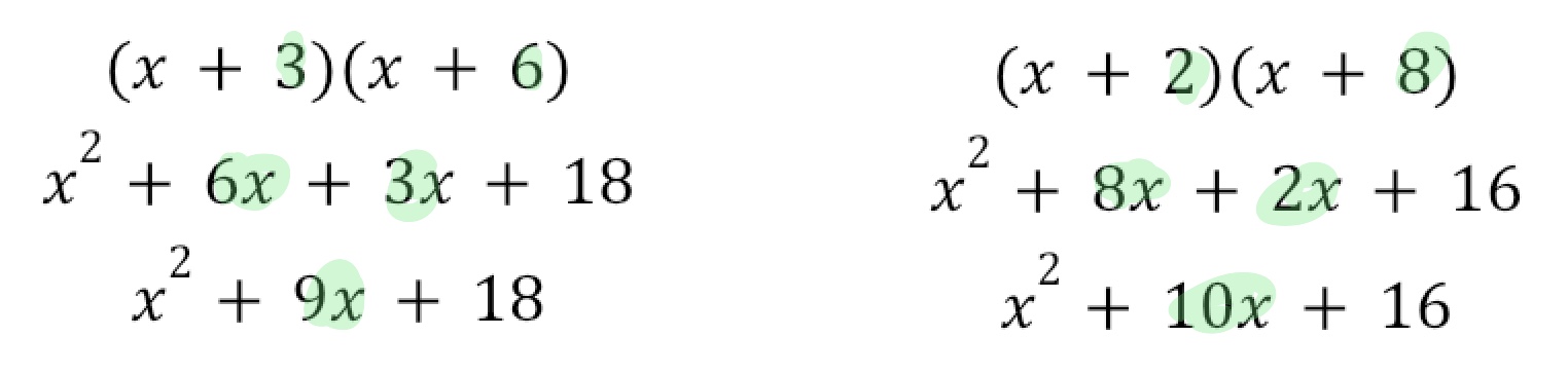 If you struggled with the first few problems, watch the video below to see two different methods of multiplying binomials. If you feel comfortable, you can skip it.