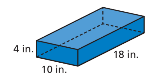 Assume that the box has no top. What is the surface area of the box shown? Supongamos que la caja no tiene tapa. ¿Cuál es la superficie de la caja mostrada?