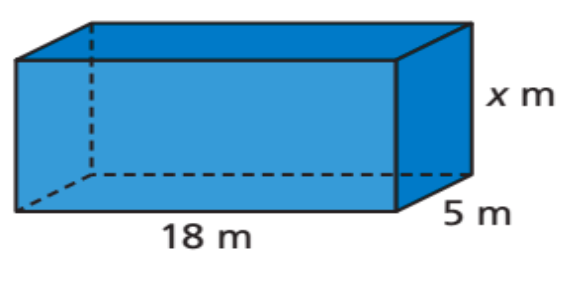 A pet store has a large fish tank with the dimensions shown. The tank has a volume of 585 cubic meters. What is the depth of the tank?