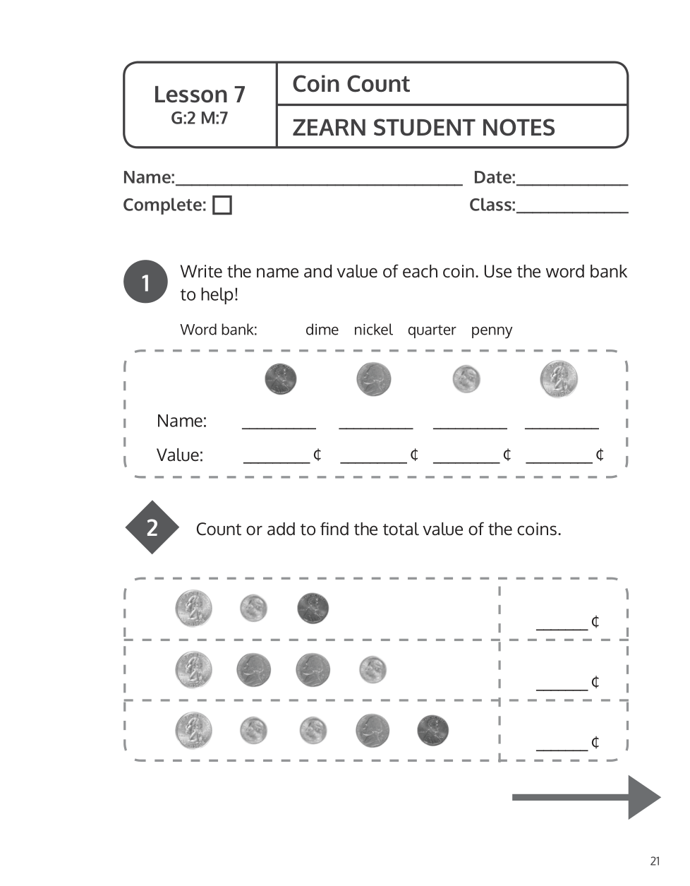 Zearn Grade 2 Mission 7 Packet