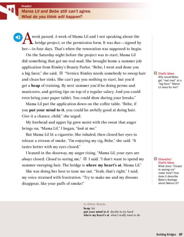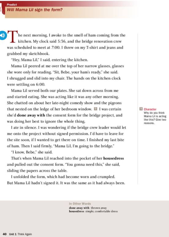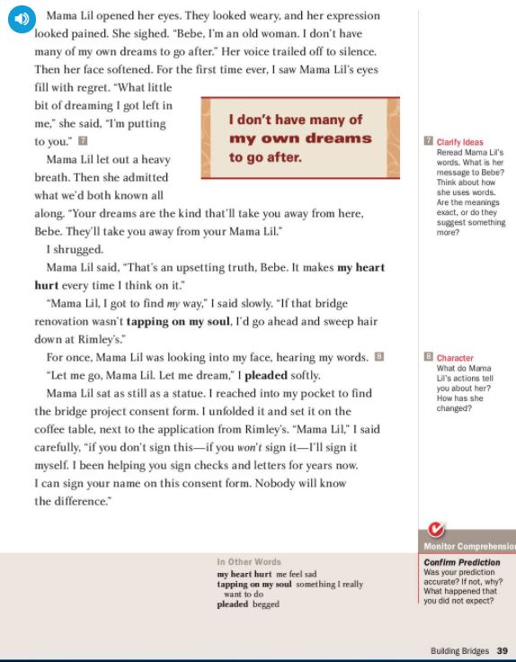 Read these sentences from the passage."Truth be told, Mama Lil was scared of something she didn't know. She hardly ever left our neighborhood in Brooklyn. To her, the Brooklyn Bridge was a mystery."