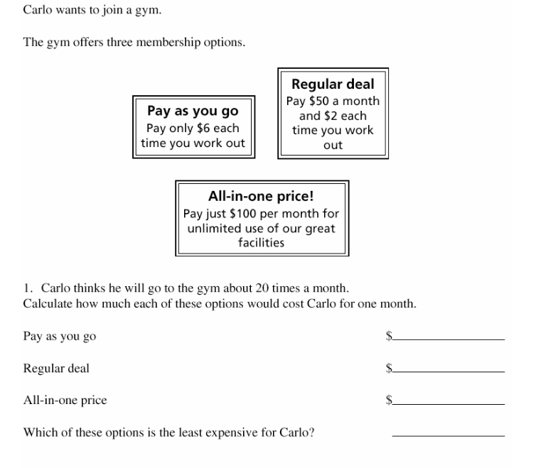 How many visits each month would make the cost of the Regular deal and the All-in-one price the same?Show calculations for credit.