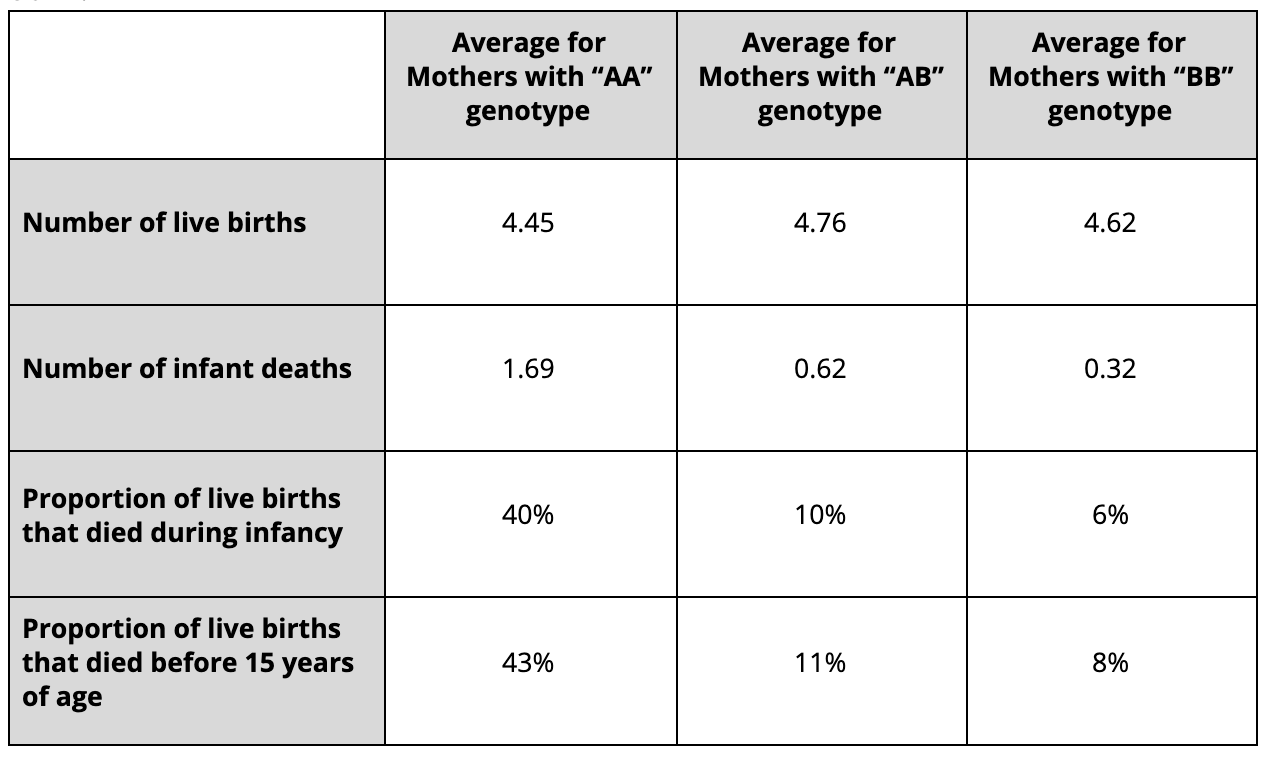 Recent scientific studies have documented variation in the alleles of Tibetan women. The alleles being studied are indicated as A and B below and represent alternative versions of a trait that affects blood vessel size in women. Large blood vessels result in high oxygen content. High oxygen content in blood, is important for survival at high altitudes. For these purposes, lets say blood vessel size is a trait that follows a pattern of incomplete dominance. That means one allele is for large blood vessels, the other for small blood vessels, and in the heterozygous genotype, an individual would have medium sized blood vessels.