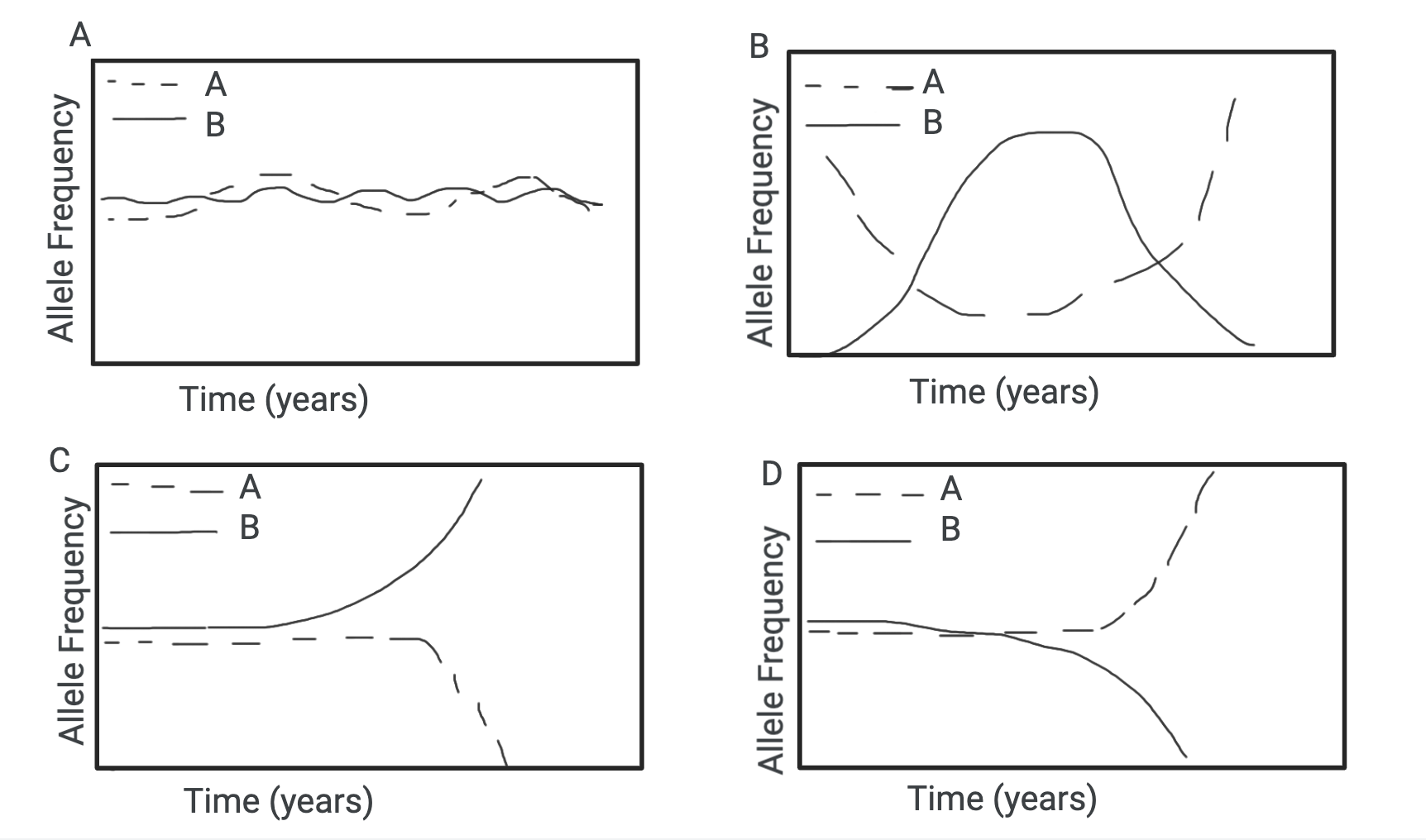 Which graph do you think best predicts what will happen to the relative frequency of Alleles A and B in the population of Tibetan women over many generations?