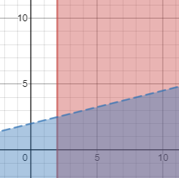 Write a system of linear inequalities for the shaded region. Write the inequality for the vertical line here.