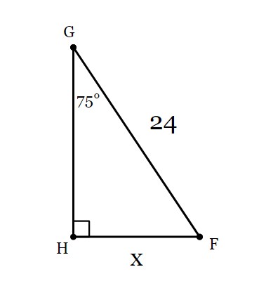 In ΔFGH, the measure of ∠H=90°, the measure of ∠G=75°, and FG = 24 feet. Find the length of HF to the nearest tenth of a foot.