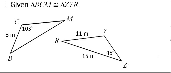 For each pair of triangles, tell which conjectures, make the triangles congruent.