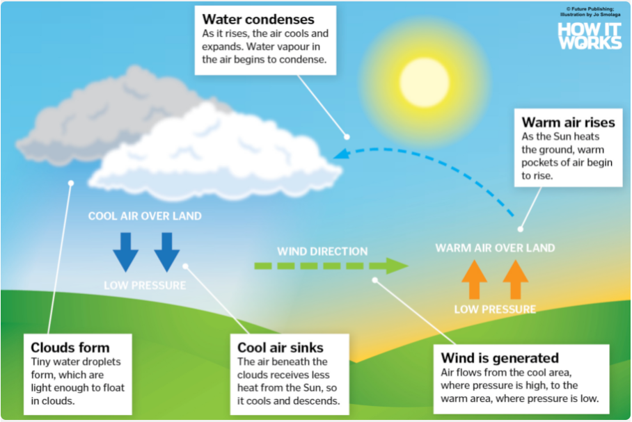 According to the picture, how do clouds form?