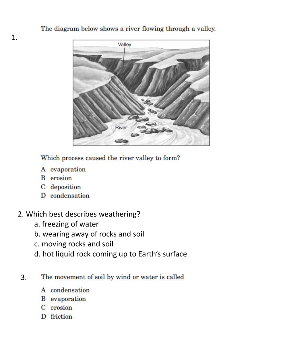 Which process caused the river valley to form?