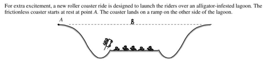 After the coaster is airborne, will its maximum height be greater than, less than or equal to its original height at position A?