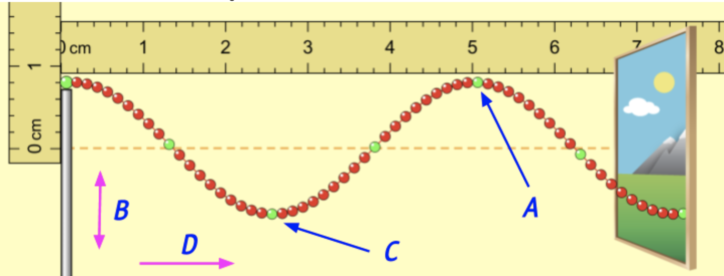 Match the wave examples or parts of the wave from the diagram below to the correct wave vocabulary terms. Make the best match - each term will only have one best match.