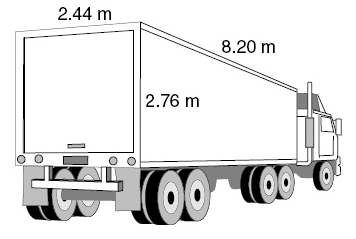 The cargo space of the truck is 2.44 meters wide, 2.76 meters high, and 8.20 meters long. How many square meters of aluminum was used to create the cargo space?