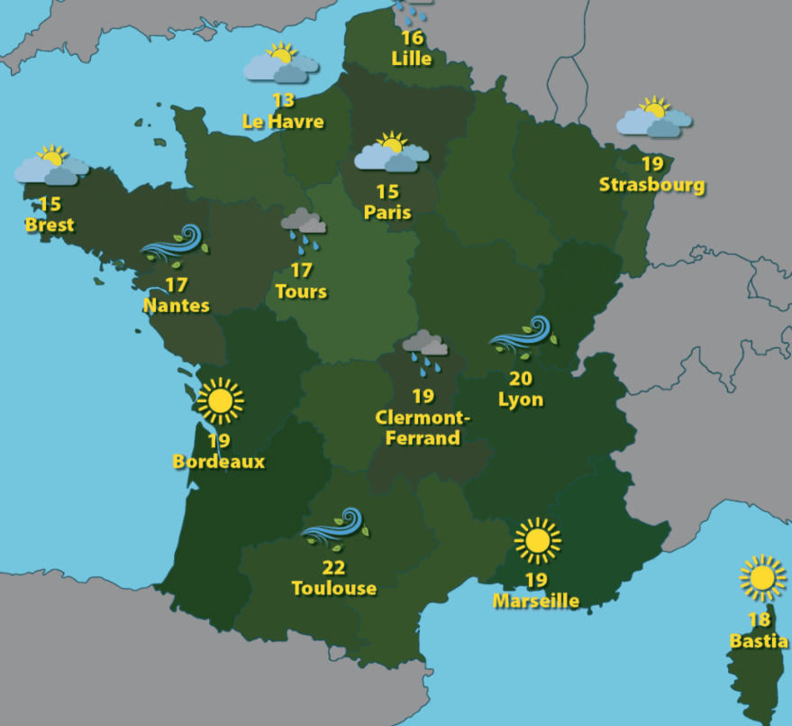 In FRENCH, describe the weather for the city of Bordeaux based on the forcast which is illustrated?