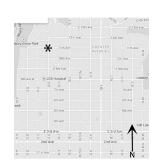 Here is a map of part of Downtown Salt Lake City. You are starting at the corner of 11th Ave. and D St. (on the star). If you walk East to I St., South to 7th Ave., West to D St. and then North to your starting point, how many blocks will you have walked in total? Describe the shape of your path.
