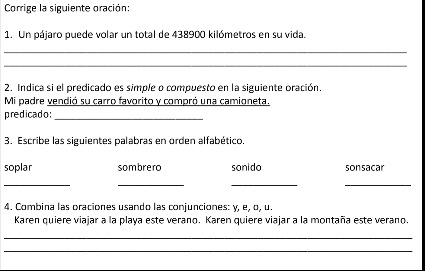 Combina las oraciones usando las conjunciones: y, e, o, u.