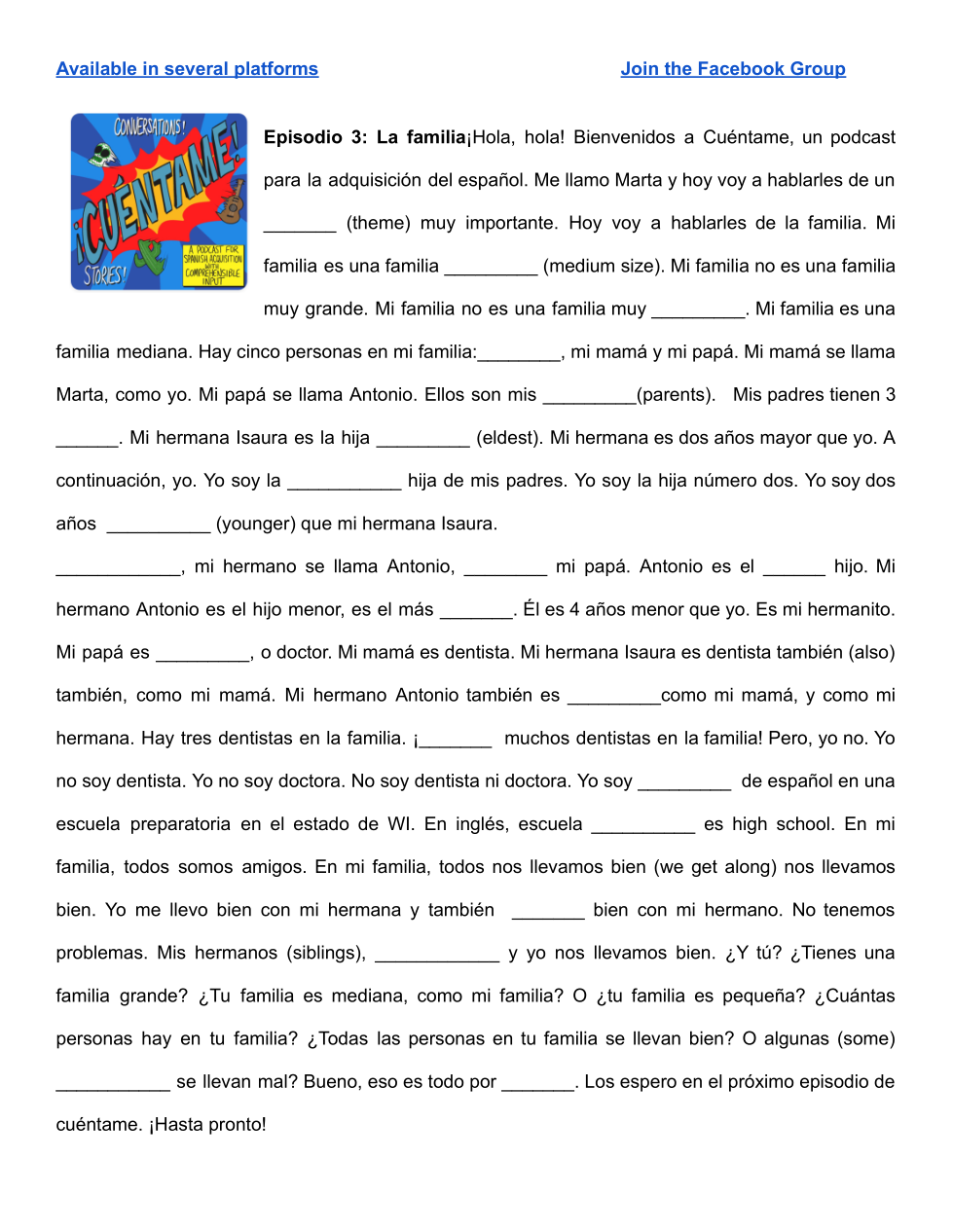 In Spanish, tell me about your family. Do you have a big family, a meduim sized family or a small family? Where do you and your family live? How many people are in your family? Name each person and their relation. Name their age and birthday. Describe the personality of each person. Name what each person likes to do and what he or she does in their free time. You might also want to describe what someone looks like (any similarities). Do you get along with everyone in your family? What are you and your family going to do this summer? Feel free to add anything else:)