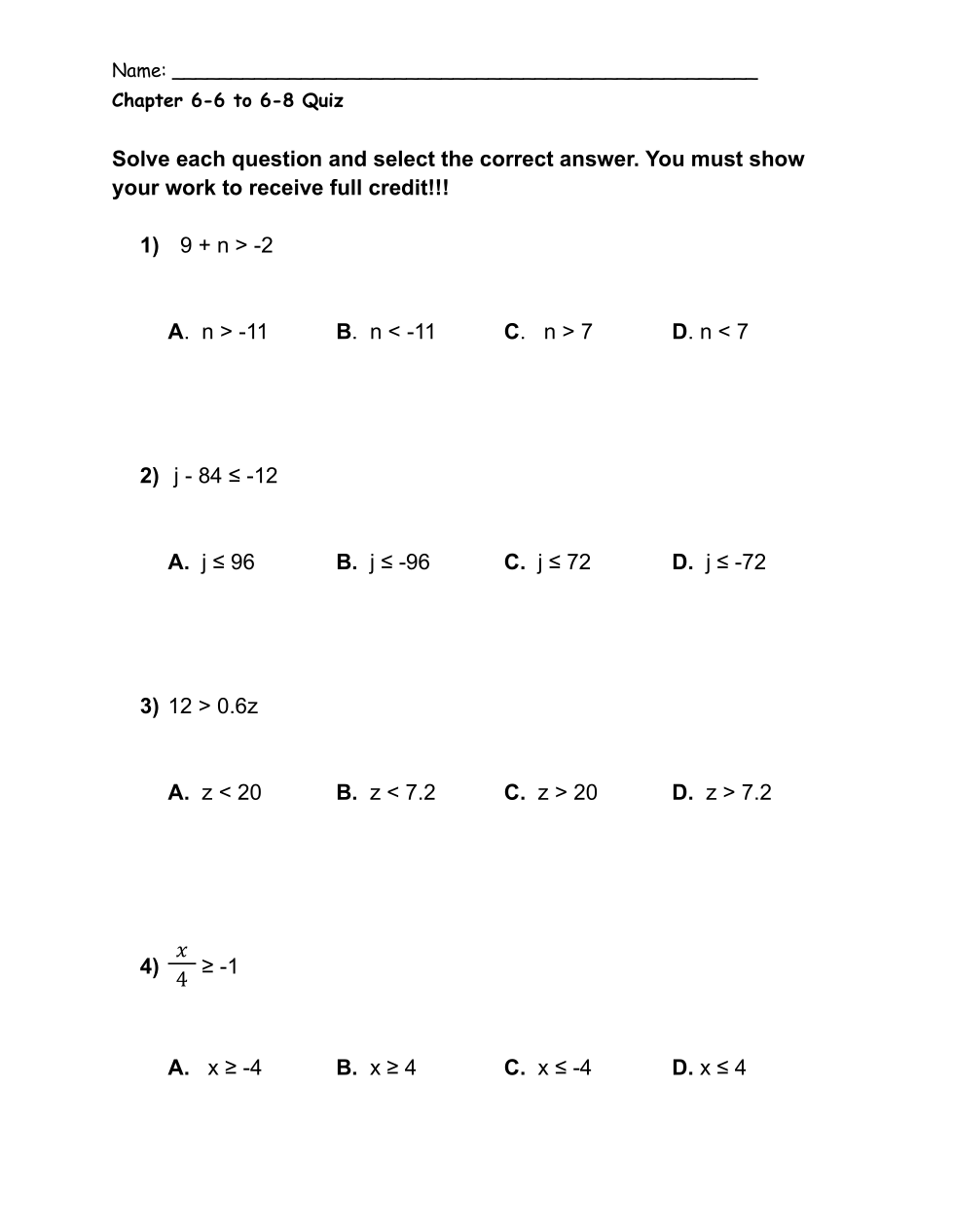 Chapter 6-6 to 6-8 Quiz