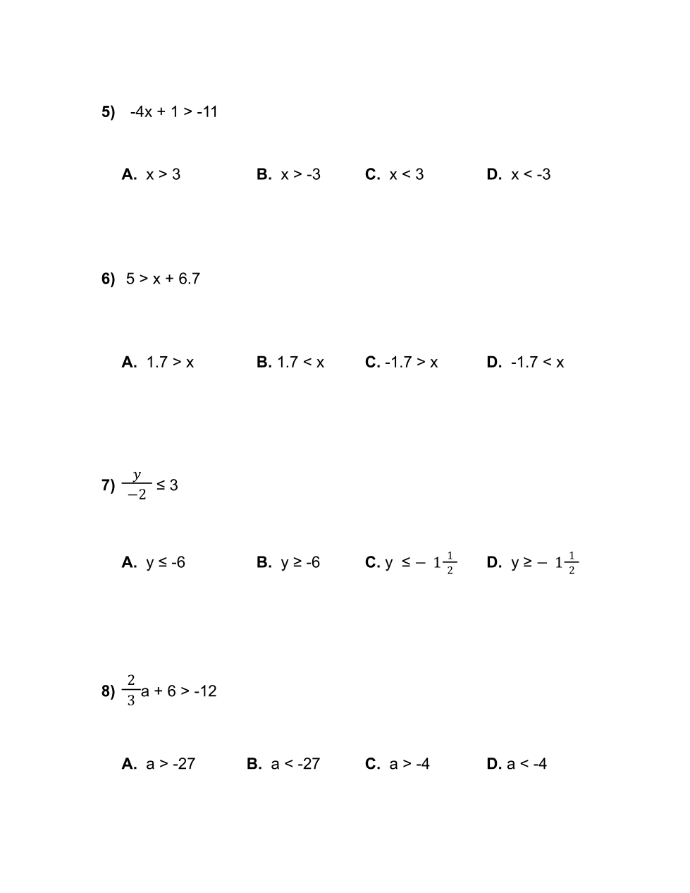 5 > x + 6.7